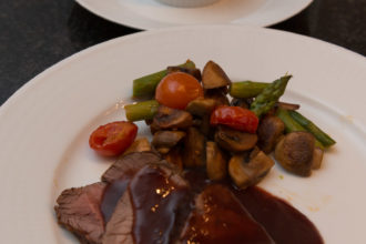 Helstekt oxfilé med potatis- och västerbottenbakelse och portvinssås